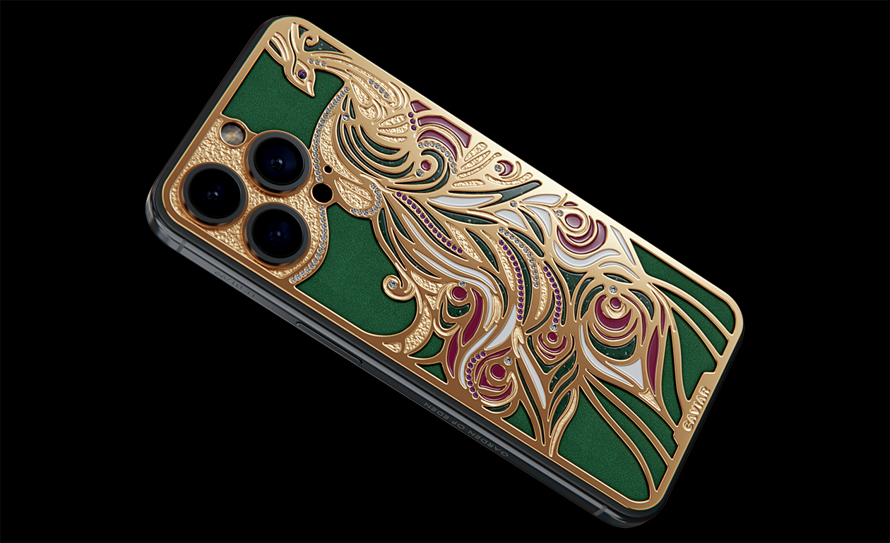 Райская птица, усыпанная сияющими кристаллами Swarovski. Caviar представляет потрясающий шедевр ювелирного искусства. Bird of Paradise олицетворяет экзотическую красоту природы. Сочетание 24-каратного золота и цветной эмали создают чувство восторга и восхищения при каждом взгляде на ваш телефон.