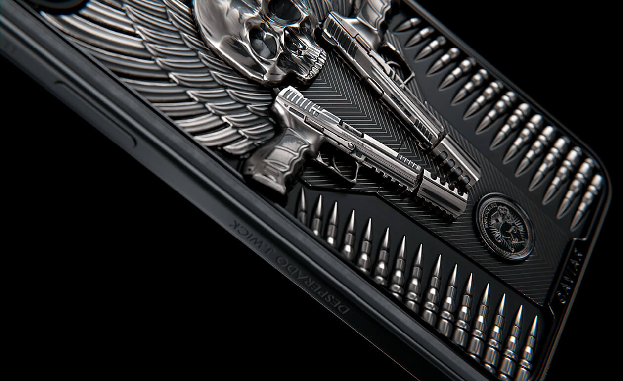 Мастера Caviar заключили яростный дух охотника за головами в кастомный iPhone 16 Pro Bounty Hunter. Смелый дизайн с черепом и двумя перекрещивающимися пистолетами воплощает дух борца за справедливость. Вдохновленный неумолимым желанием свободы и возмездия Джона Уика, этот iPhone – не просто устройство, а символ непоколебимой решимости. Особый элемент, который придется по вкусу фанатам саги о наемном убийце - лазерная гравировка монеты Континенталь на титановом корпусе смартфона.