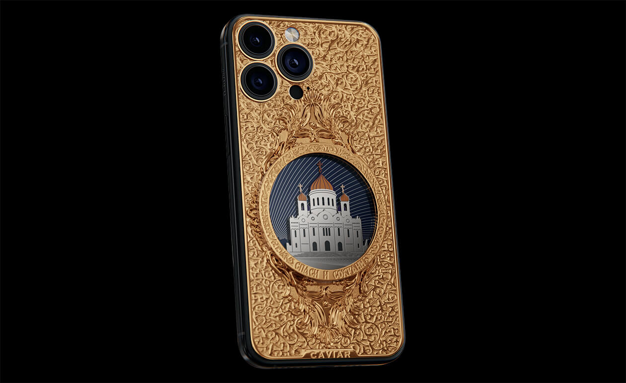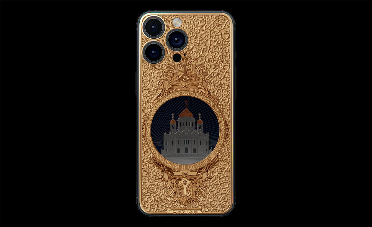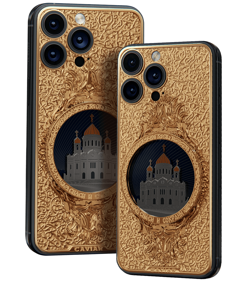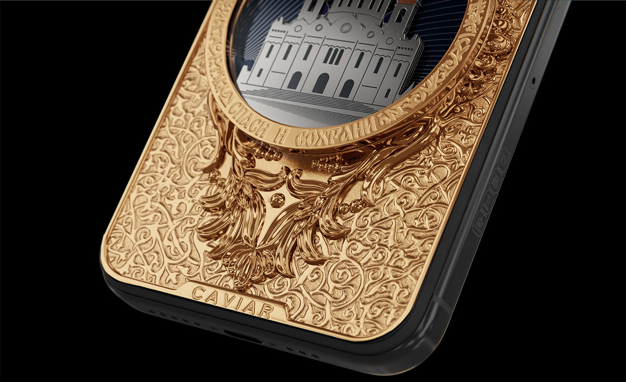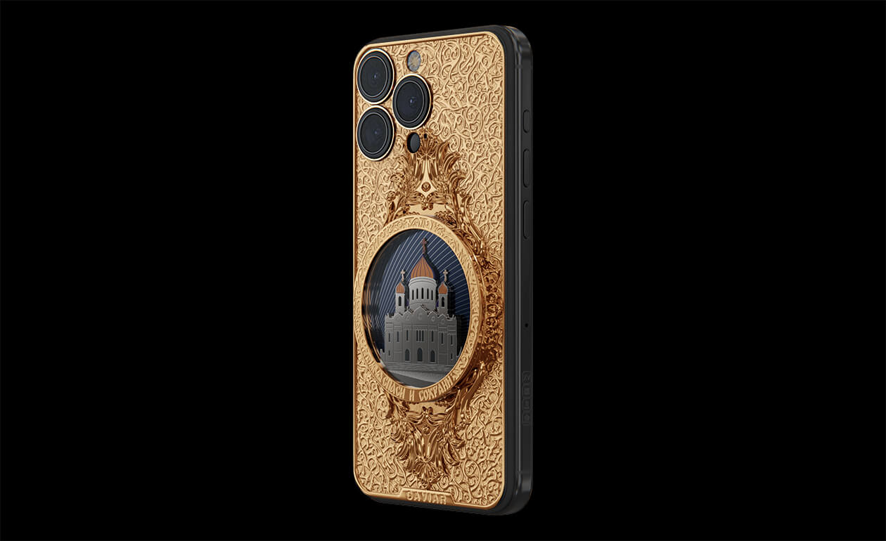 Дизайн телефона изящно сочетает в себе элементы из титана и двойного золотого покрытия по технологии Double Electroplated (999-проба, 7 мкм.), создавая роскошное произведение искусства. Восхитительные линии и утонченная гравировка по металлу воздают дань внутреннему убранству храма, изобилующим сусальным золотом, мрамором, порфиром и лабрадором.