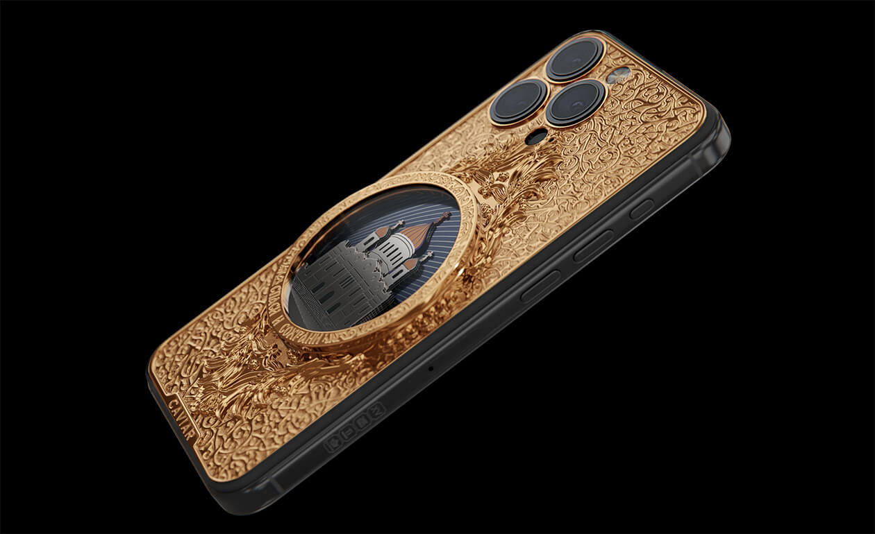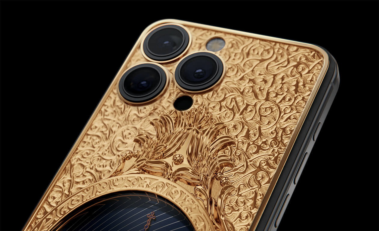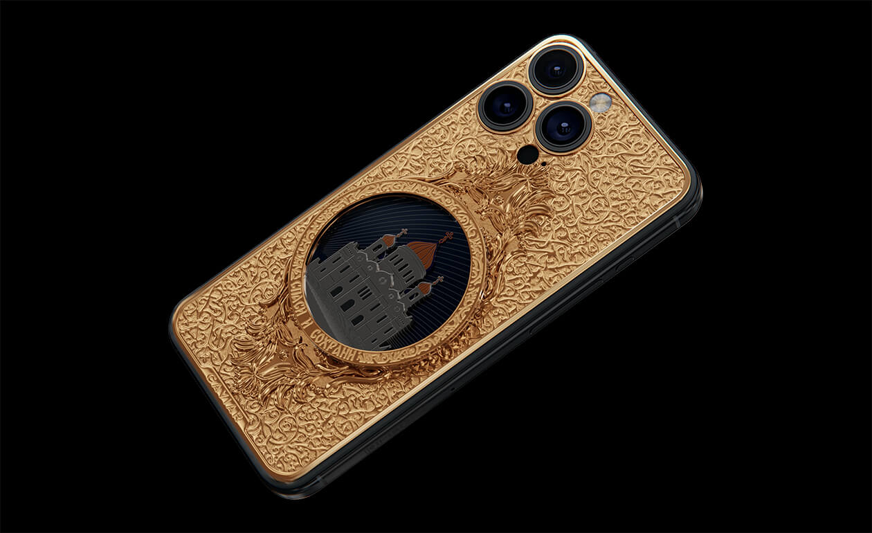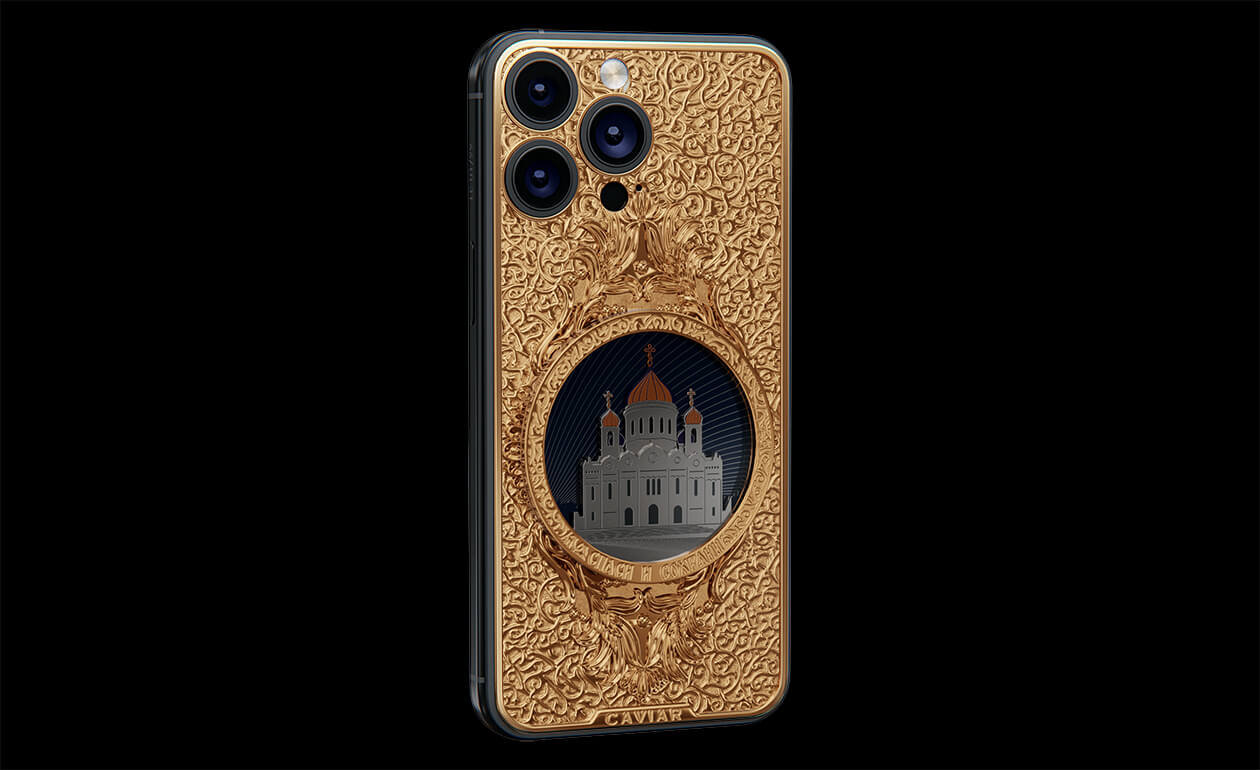 Дизайн телефона изящно сочетает в себе элементы из титана и двойного золотого покрытия по технологии Double Electroplated (999-проба, 7 мкм.), создавая роскошное произведение искусства. Восхитительные линии и утонченная гравировка по металлу воздают дань внутреннему убранству храма, изобилующим сусальным золотом, мрамором, порфиром и лабрадором.