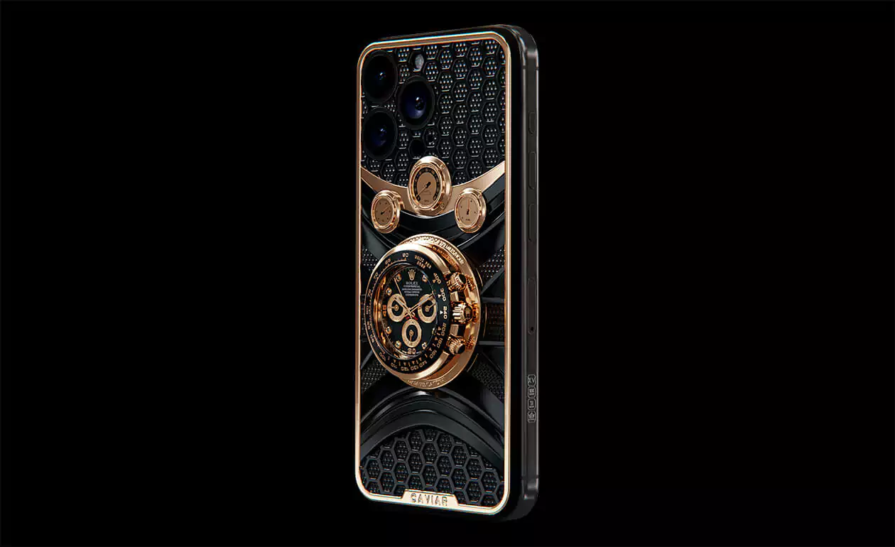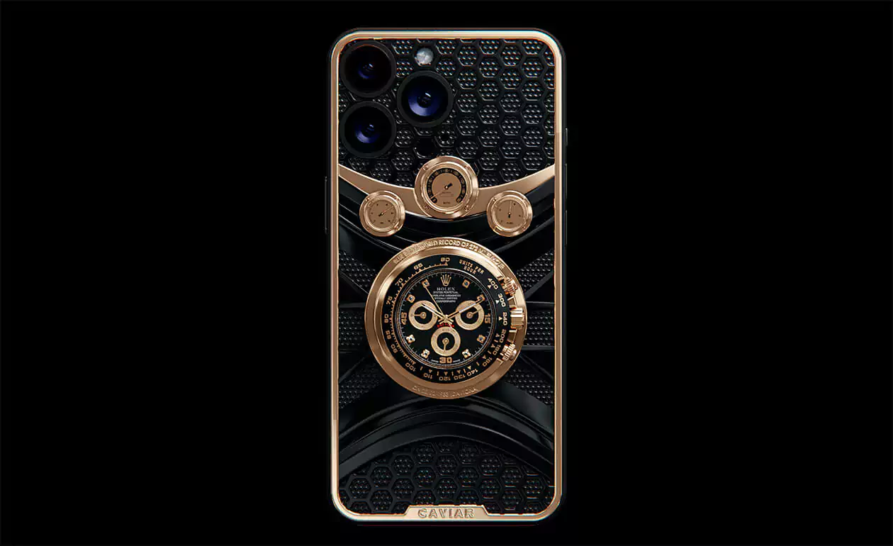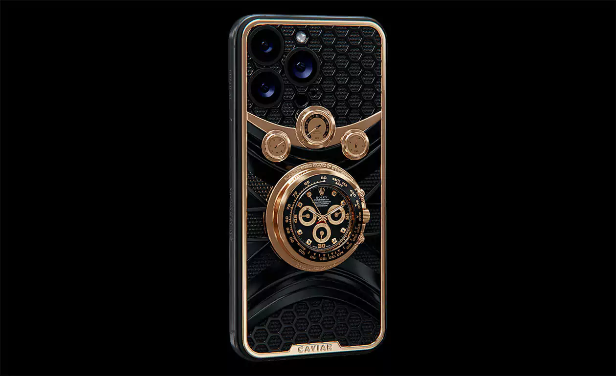 Обратите внимание, часы Rolex - не единственное усложнение iPhone, а часть целой художественной композиции, отдающей дань уважения истории коллекции Rolex Daytona. Корпус телефона выполнен в стиле гоночных автомобилей 30-ых годов, таких как Blue Bird Кэмпбелла, установившей на трассе Daytona мировой рекорд скорости. Декоративные спидометры и переключатели, выполненные из золота создают образ приборной панели суперкара, чей подвиг положил начало великой часовой коллекции Rolex Daytona.