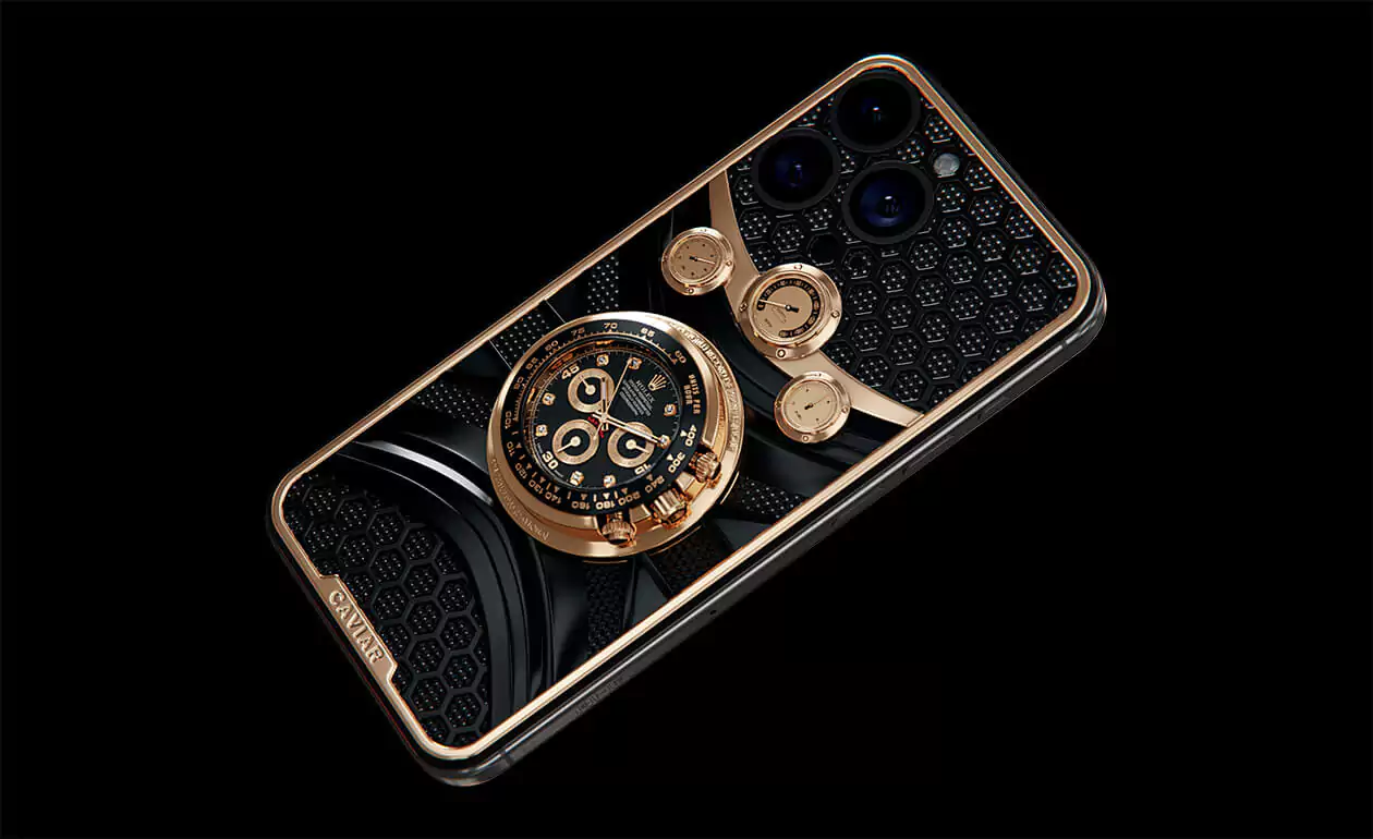 Мастера Caviar тоже ставят перед собой цель постоянно превосходить собственные достижения. В этот раз целью стал впечатляющий iPhone 16 Pro с часами Rolex на корпусе. Золотые Rolex Daytona сами по себе произведение искусства, а часы совмещенные с новейшим смартфоном от Apple, возможно самым актуальным изобретением человечества прямо сейчас - поистине монументальный труд.