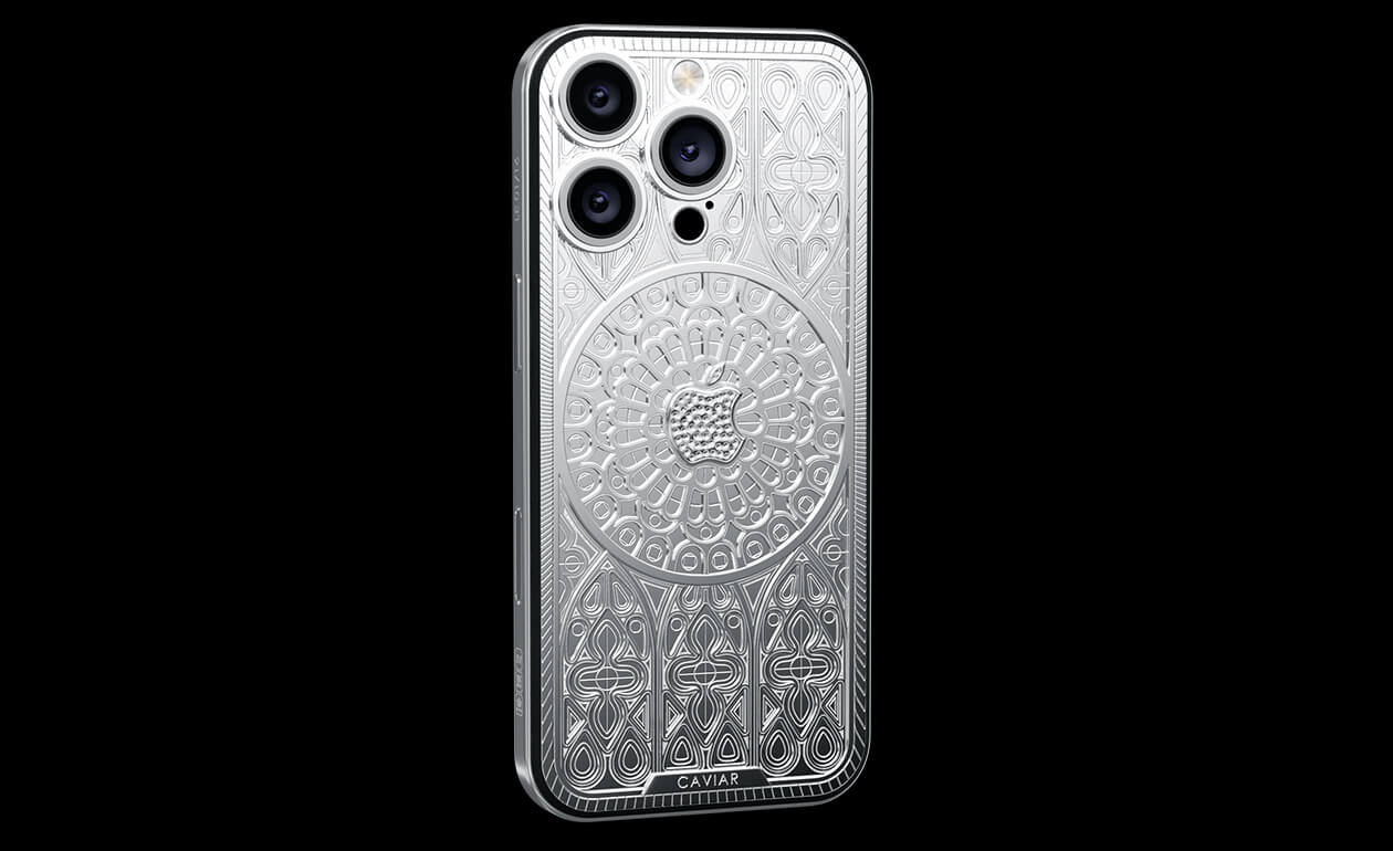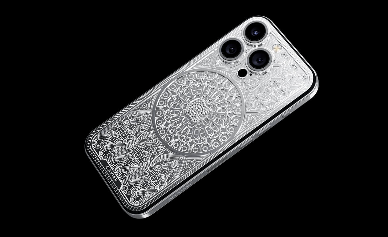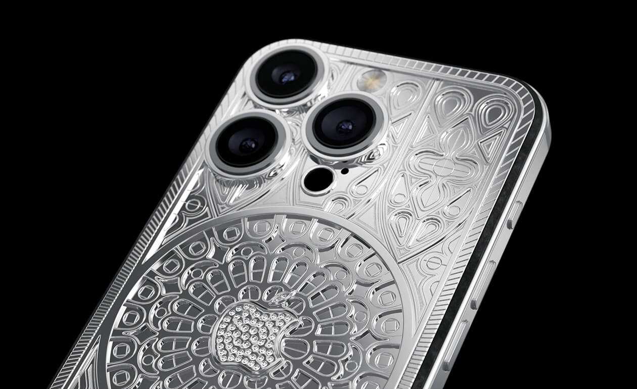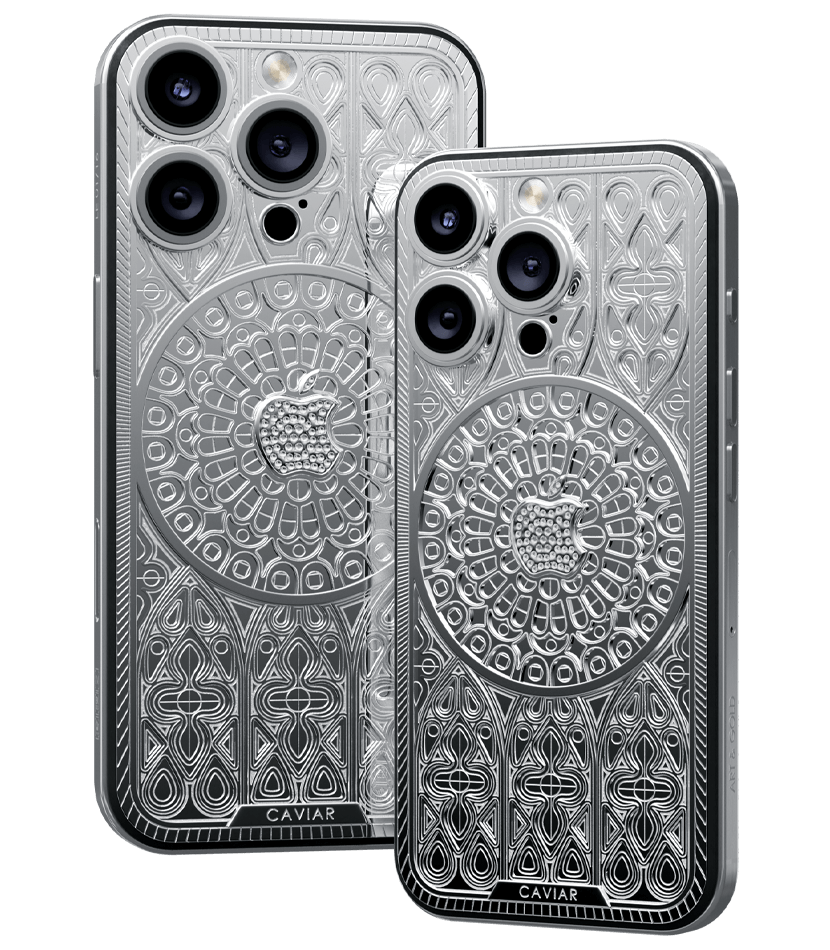 Caviar iPhone Notre Dame, выполненный в стиле готики, отражает величественный образ шедевра архитектуры - Нотр Дам де Пари с его возвышенными арками и витражными окнами.