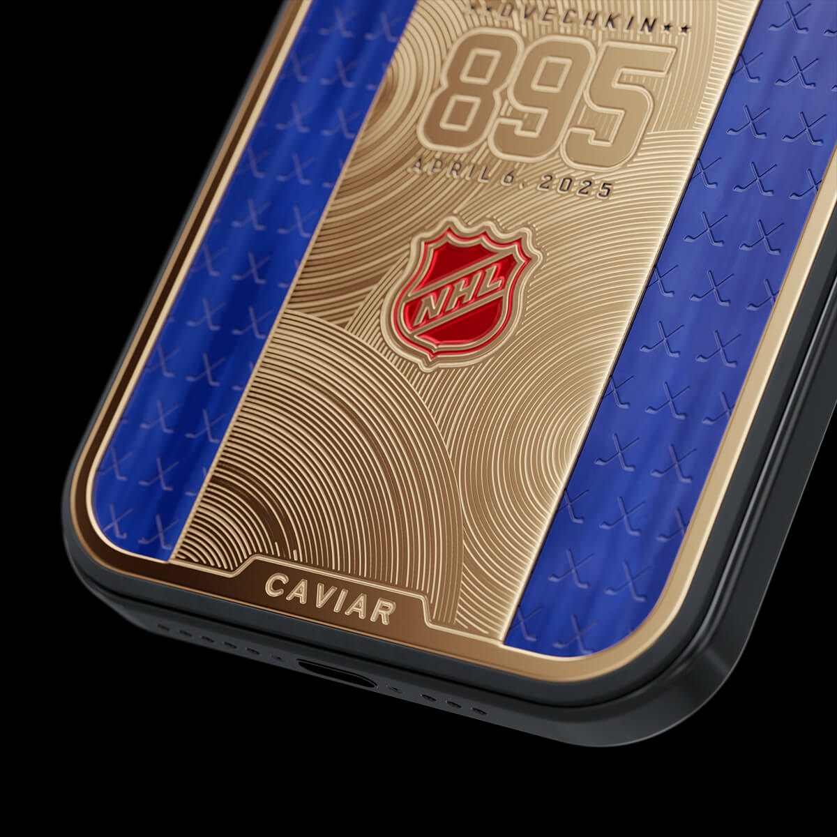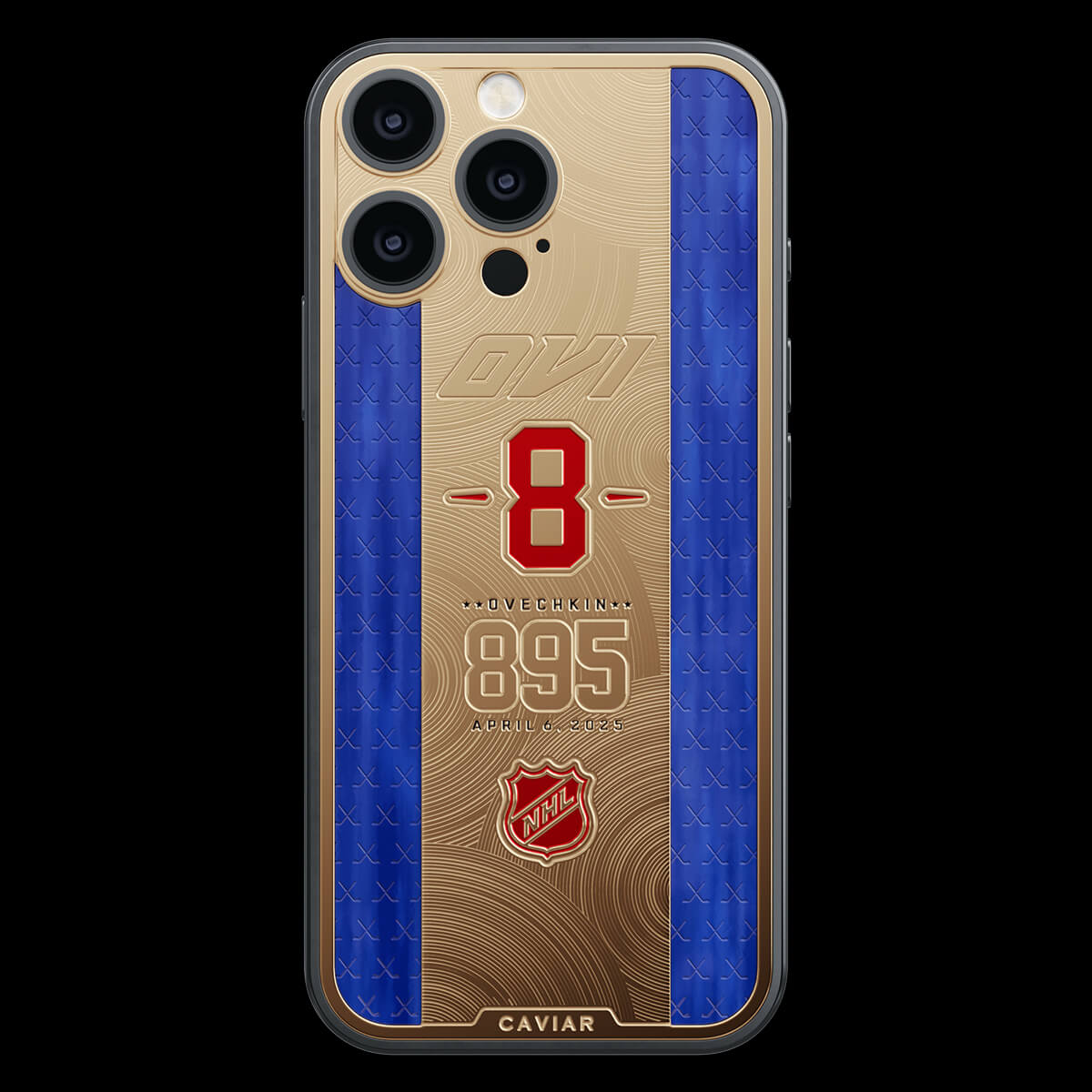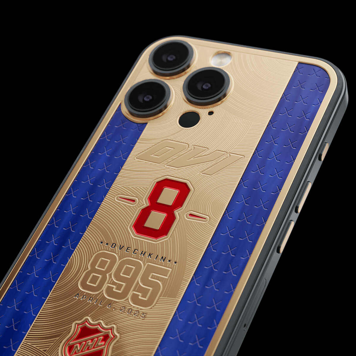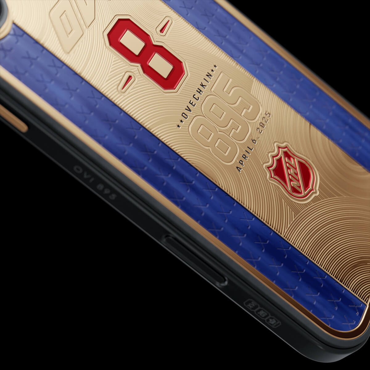 Мастера Caviar воплотили рекорд Александра Овечкина в золоте – корпус устройства и цифры 895 и покрыты золотом 999 пробы. Цифра 8 имеет для семьи Овечкиных особое значение, Александр начал играть под этим номером в знак любви и уважения к матери, Татьяны Овечкиной, двукратной олимпийской чемпионки СССР – это был ее номер в баскетбольном «Динамо», поэтому в дизайне от Caviar восьмерка покрыта ювелирной эмалью красного цвета.