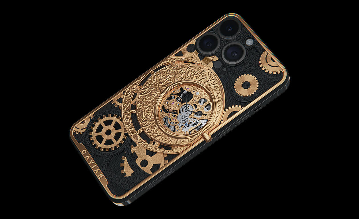 Теперь в вашем полном распоряжении не только современный смартфон для которого в технологическом плане нет ничего невозможного, но еще и точные часы-скелетоны, эффектно дополняющие грандиозное панно из покрытых золотом декоративных шестеренок на задней стороне корпуса.