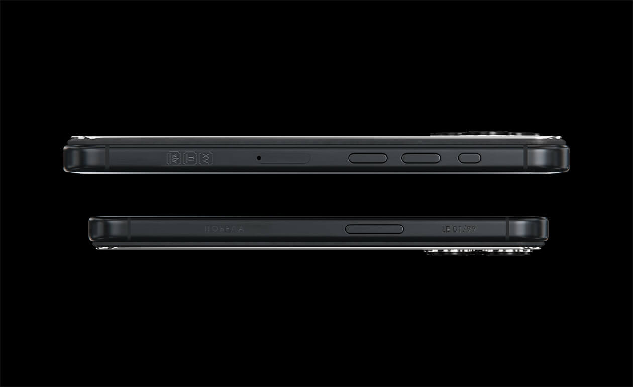 Корпус телефона выполнен из титана – прочного и надежного металла, символизирующего стойкость и несгибаемый дух нашего народа. Телефон украшен ювелирной эмалью в цветах Георгиевской ленты и пятиконечной звездой, символизирующими доблесть и патриотизм.