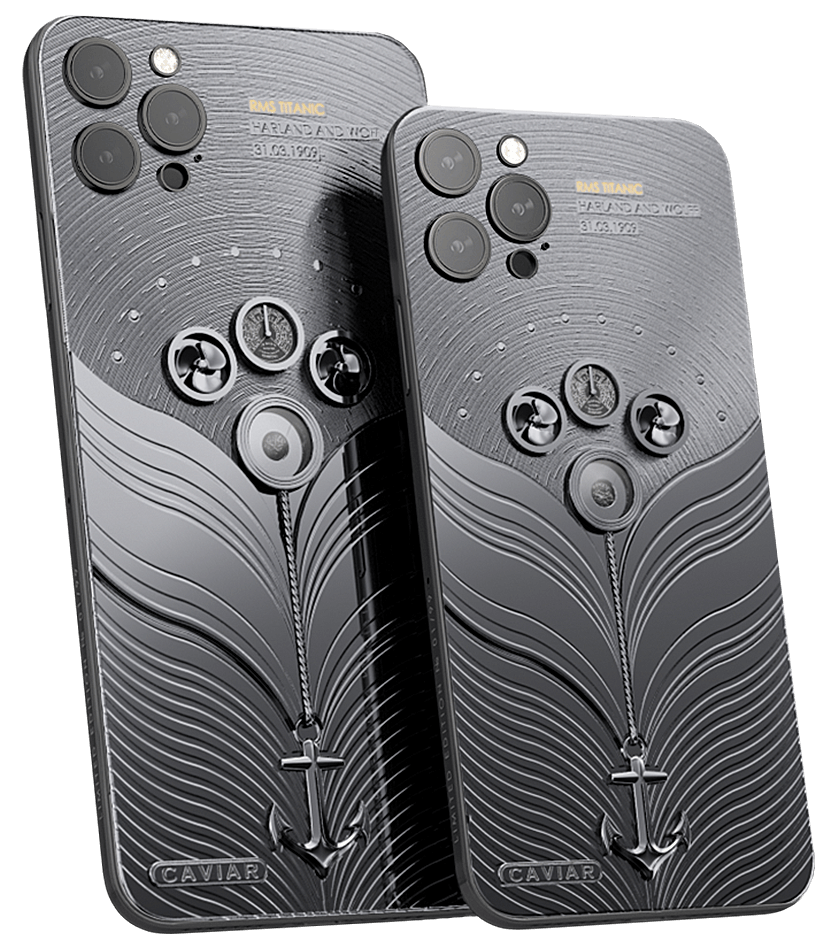 Поэтому дизайнеры Caviar задались целью успеть и заполучили фрагмент Титаника и включили его в роскошный дизайн iPhone 12 Pro. Кроме подлинной частицы с настоящего корабля, корпус украшен миниатюрными, вращающимися вентилями, изображением якоря и океанских волн, поглощающих гигантский корабль.