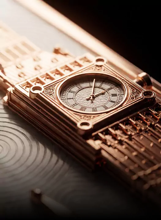 Интонационная конструкция со съёмным механизмом. Возможность интегрировать любые часы в уникальное устройство. Союз высокого часового искусства и современных технологий.