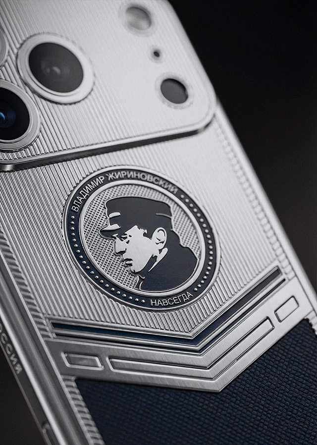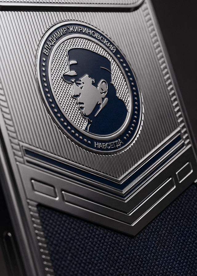 Смартфон поставляется в роскошном подарочном футляре, дизайн которого отдает дань уважения политическому наследию Владимира Вольфовича.