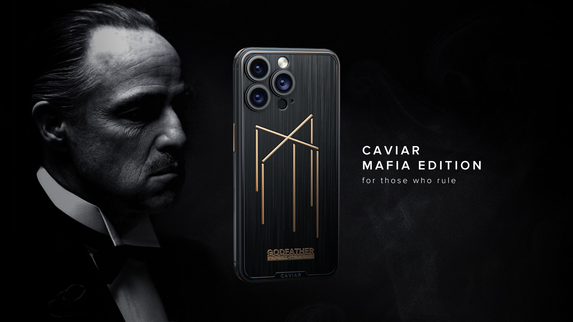 Флагманская модель коллекции называется Godfather (рус. – Крестный Отец). Черный титан с золотыми акцентами, название "Godfather" и цитата из одноименного фильма "Ничего личного - только бизнес" делают его реликвией для любителей гангстерских фильмов и мужественности.